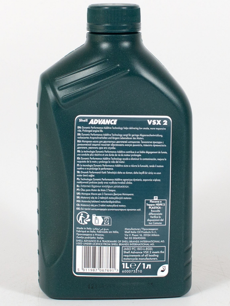 Shell ADVANCE VSX 2T -Синтетическое масло для всех современных 2-х тактных мотоциклов, скутеров и снегоходов с раздельной системой смазки и с предварительным смешиванием топлива с маслом. DPA технология обеспечит превосходную защиту и чистоту двигателя.