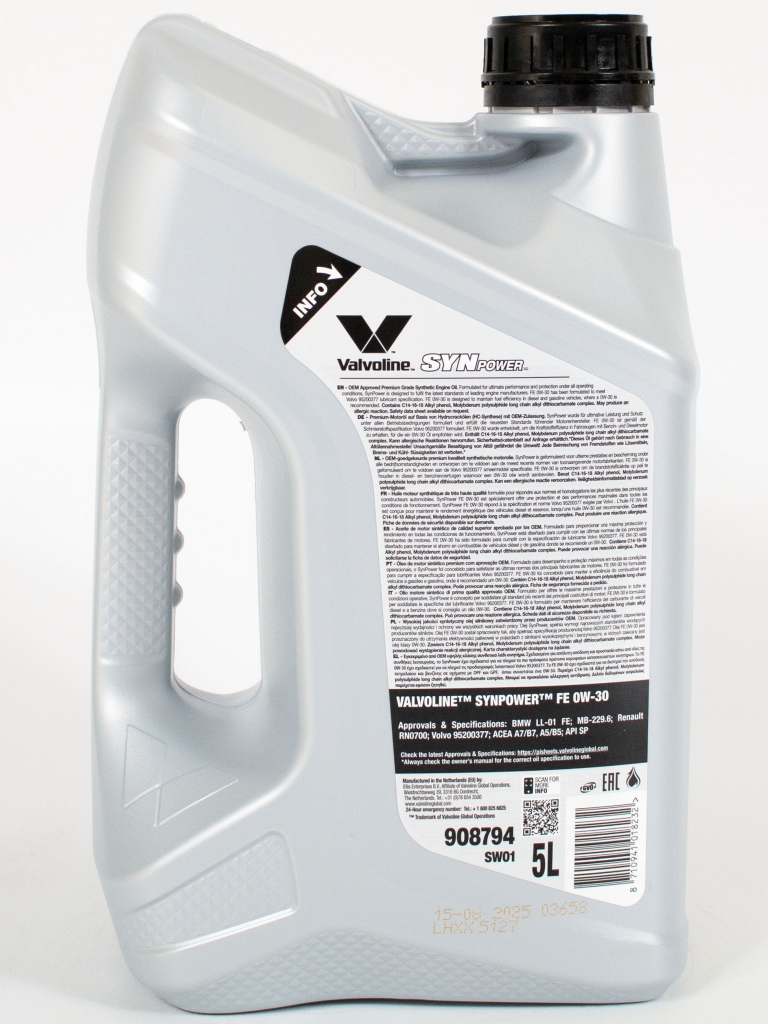 Особо рекомендуется для автомобилей Volvo, требующих моторное масло, соответствующее спецификации ACEA A5/B5 и вязкостью SAE 0W-30, а также для других автомобилей с соответствующими требованиями.